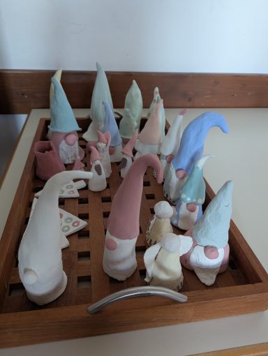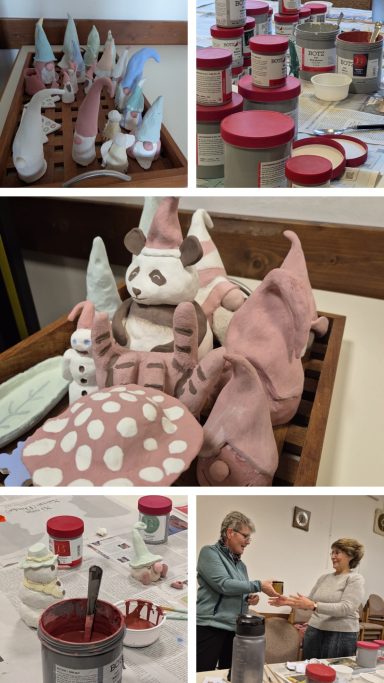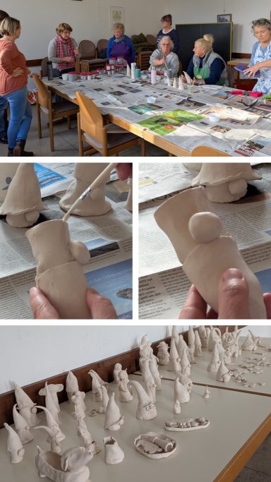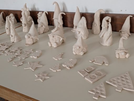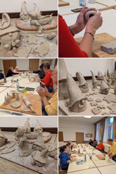 Der erste Keramikkurs am 08. und 22. November 2025 war ein voller Erfolg. Es hat viel Freude bereitet, mit Barbara die Wichtel und weitere weihnachtliche oder auch nicht weihnachtliche Motive zu gestalten. Dann wurde voller Spannung das Ergebnis des ersten Brandes (des sogenannten Schrühbrandes) abgewartet, um im folgenden Termin die Kunstwerke zu lasieren. So entstand eine große Bandbreite an Motiven, Farben und Formen, die alle den zweiten Brand (den Glasurbrand) gut überstanden und am 3.12. abgeholt werden konnten. Und es sieht so aus, als könnten wir uns auf eine Fortsetzung im kommenden November freuen.