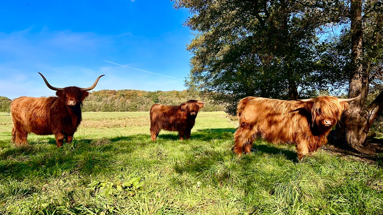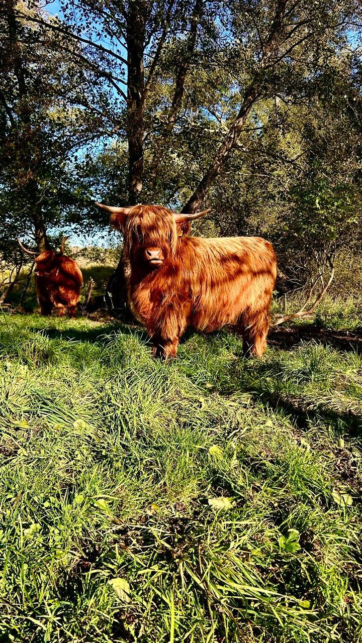 Mareike Ramm und Volker Hahn, die mit viel Herzblut ihre Herde pflegen, luden uns zu einem besonderen Spaziergang ein. Ziel waren die weitläufigen Koppeln, auf denen rund 40 Highland-Rinder rund um Rümpel leben.
