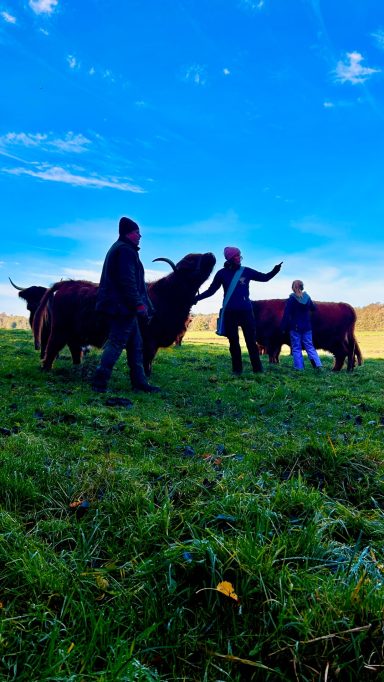 Wir erfuhren viel über die artgerechte Haltung, Aufzucht und Zucht der Highland Cattle. Die Rinder wachsen in natürlicher Umgebung auf, sind größtenteils handzahm und werden mit viel Liebe großgezogen. Besonders beeindruckend: Die Kälber bleiben lange bei ihren Müttern und haben ausreichend Platz, um sich frei zu bewegen – ein wesentlicher Beitrag zur Tiergesundheit und -qualität.